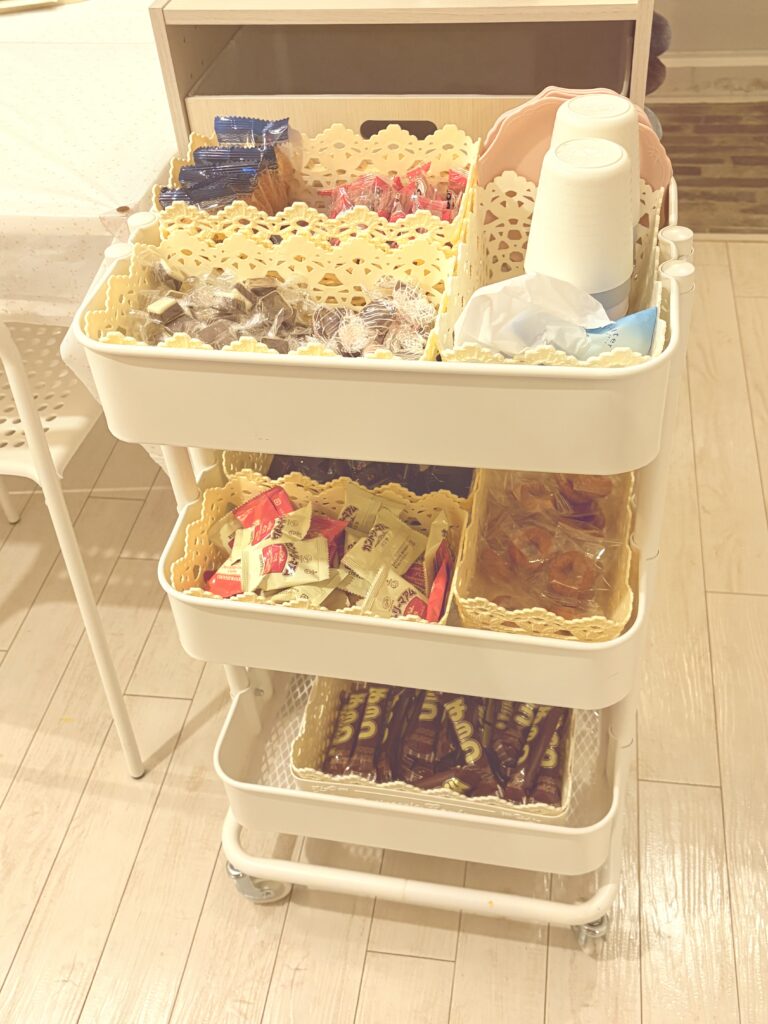 生徒が自由に食べれるお菓子を常備しております。